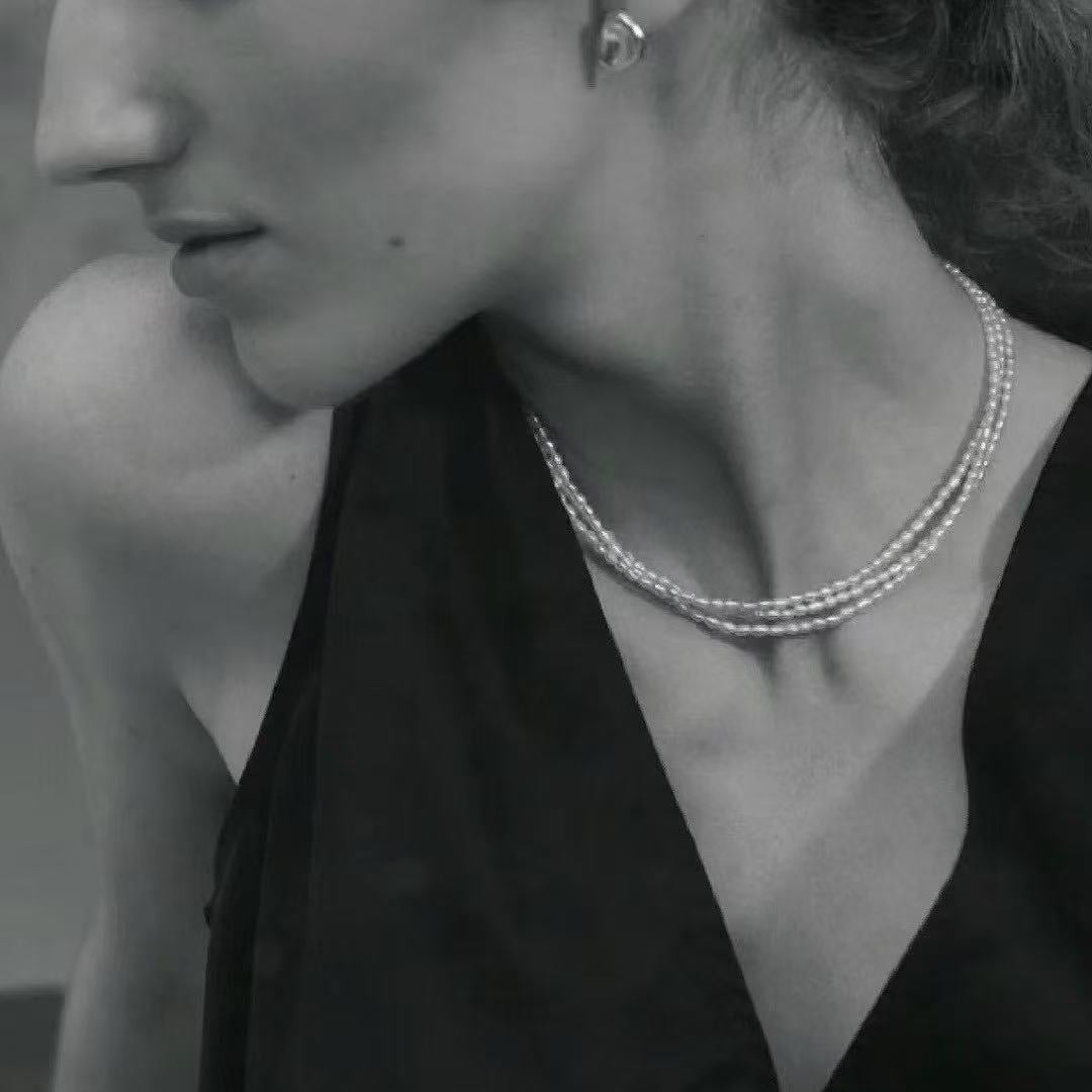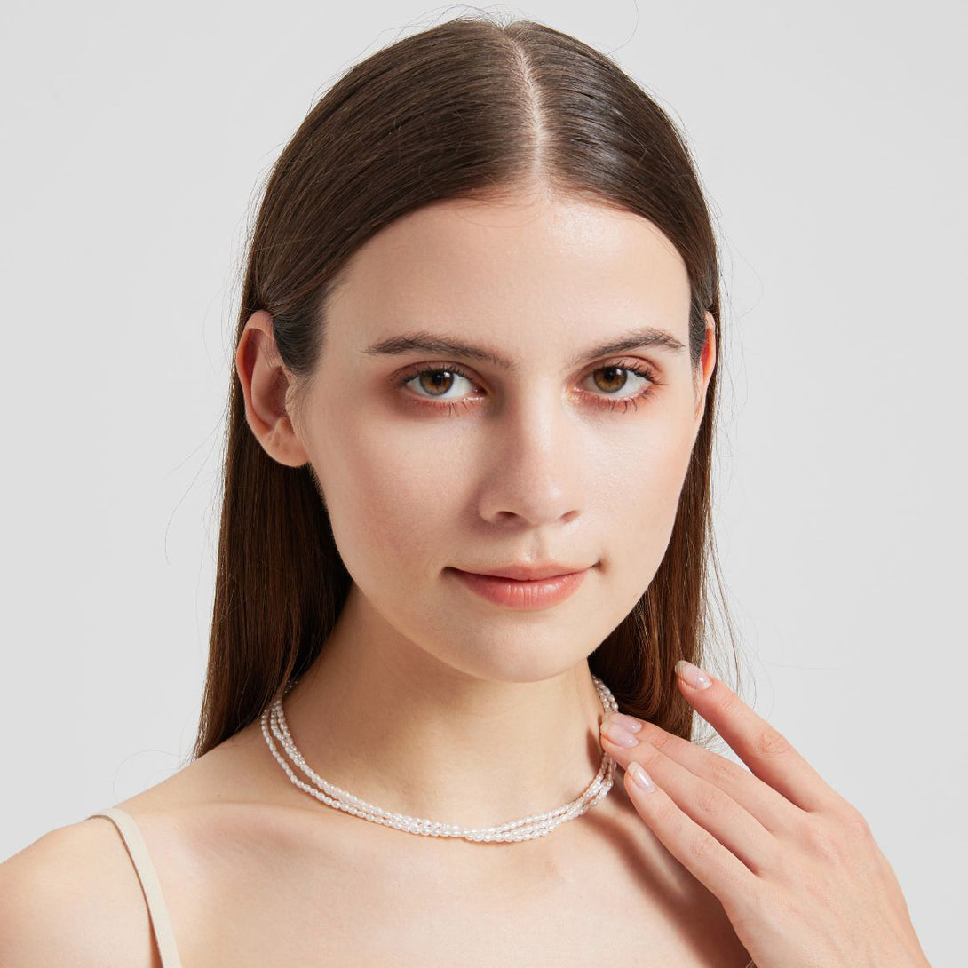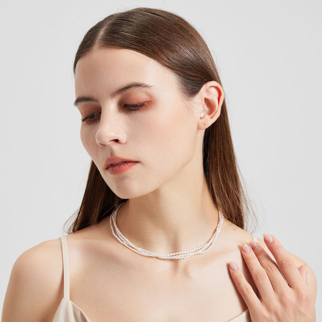 Hera Micro Freshwater Pearls Layered Choker Necklace | Sterling Silver Elegant Minimalist Jewelry for Women