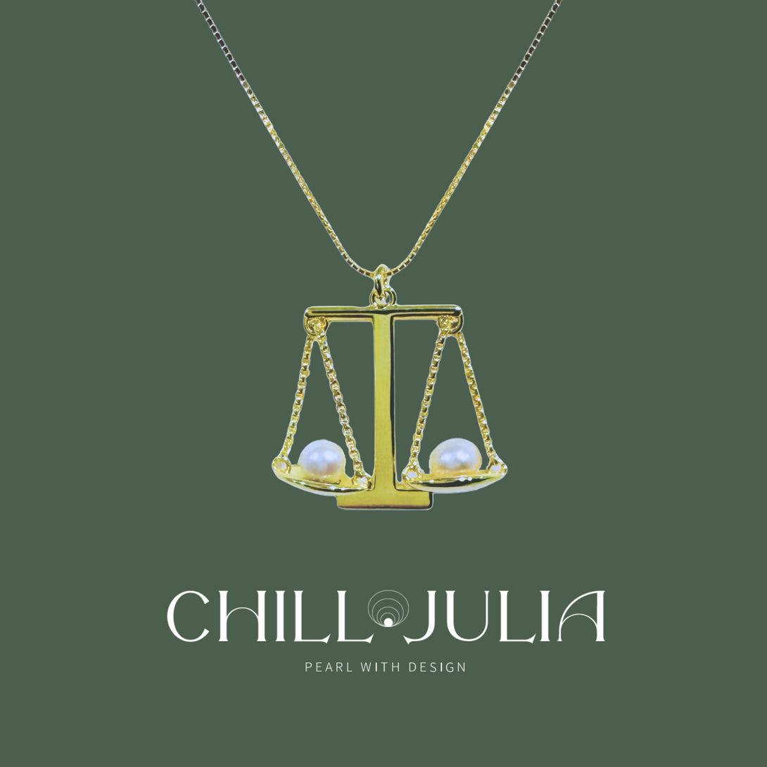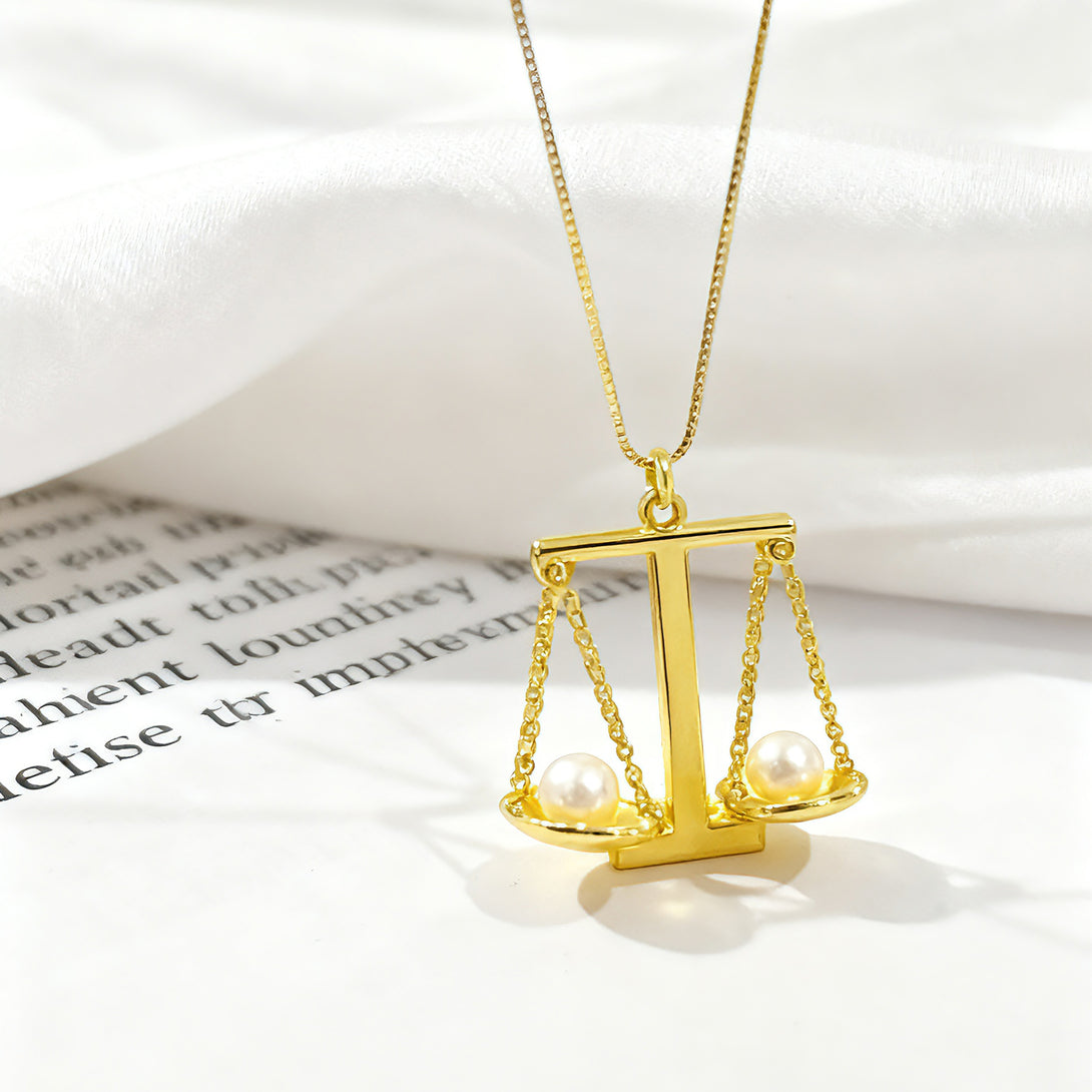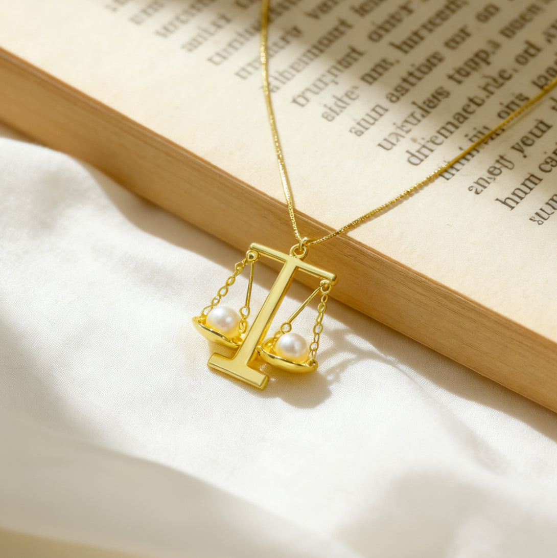 "LIBRA" Designer Natural Pearl Pendant with 18K Gold Plating on 925 Sterling Silver Necklace, Stylish Pearl Jewelry, Birthday Gift for Lawyer, Zodiac Libra.
